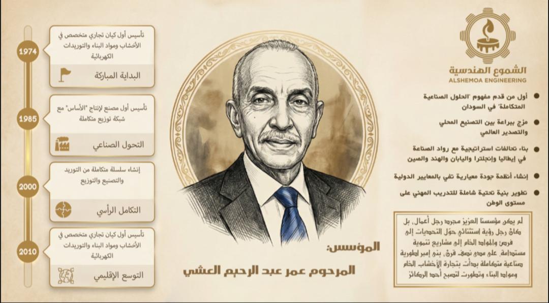 The Late Omar Abdulrahim Al-Ashi was a visionary leader who transformed raw material trading into a diversified and integrated industrial enterprise. Guided by integrity, foresight, and national responsibility, he laid the foundation for sustainable growth and long-term impact.
